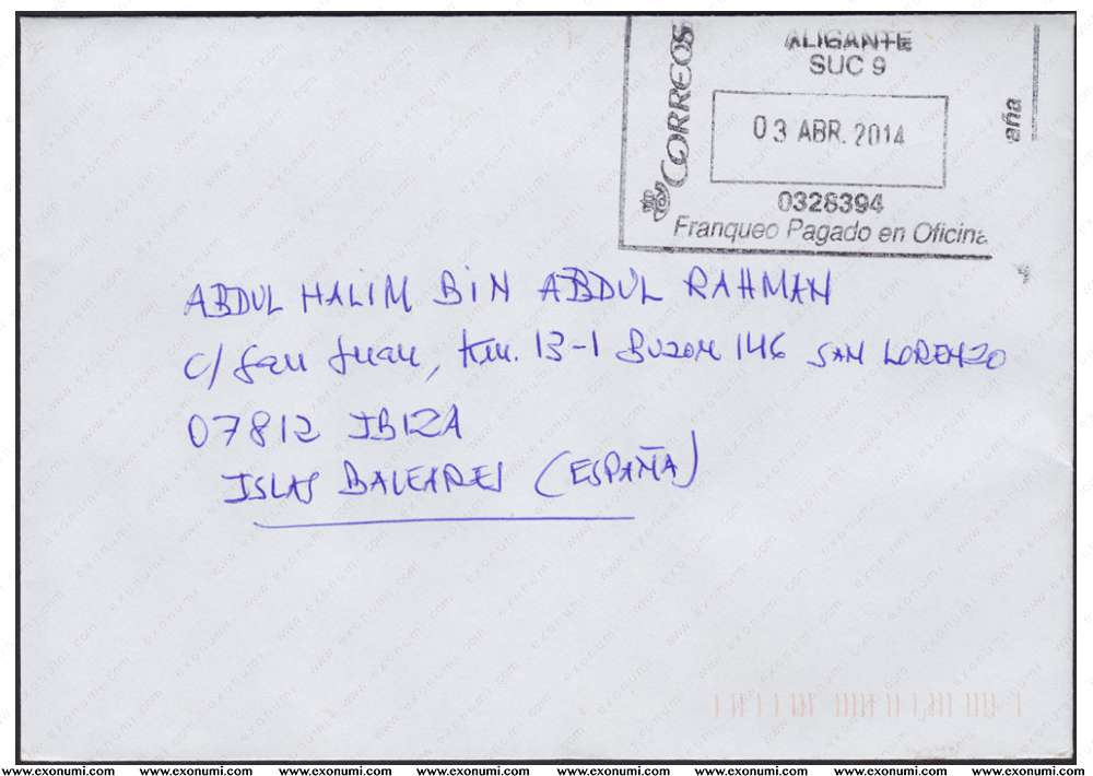 Ibiza - Postal Cover from Alicante (2014)
