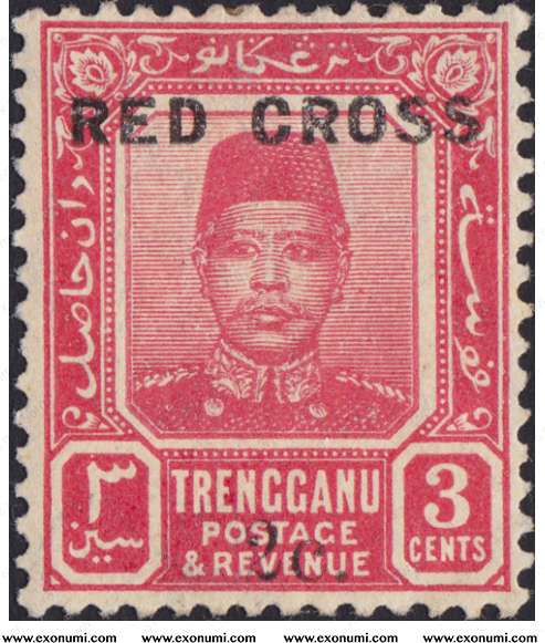 Sultanate of Terengganu - Overprinted & Surcharged : RED CROSS 2¢ on 3¢
