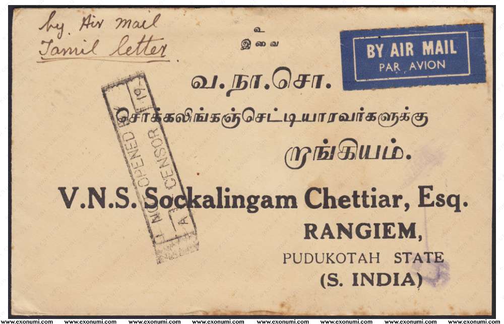 Postal Cover - From Muar, Johor to Pudukotah, India (1941)