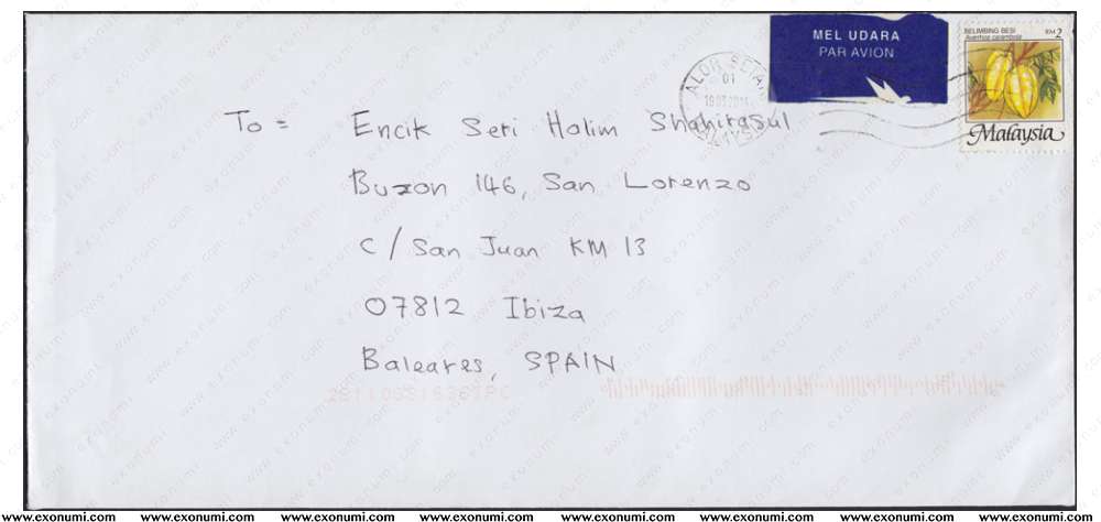 Spain - Postal Cover from Malaysia (2014)