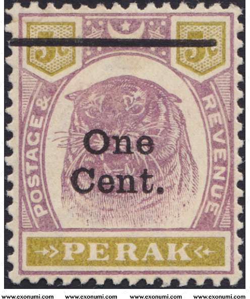 Perak - Surcharged 1¢ on 5¢ (1900)