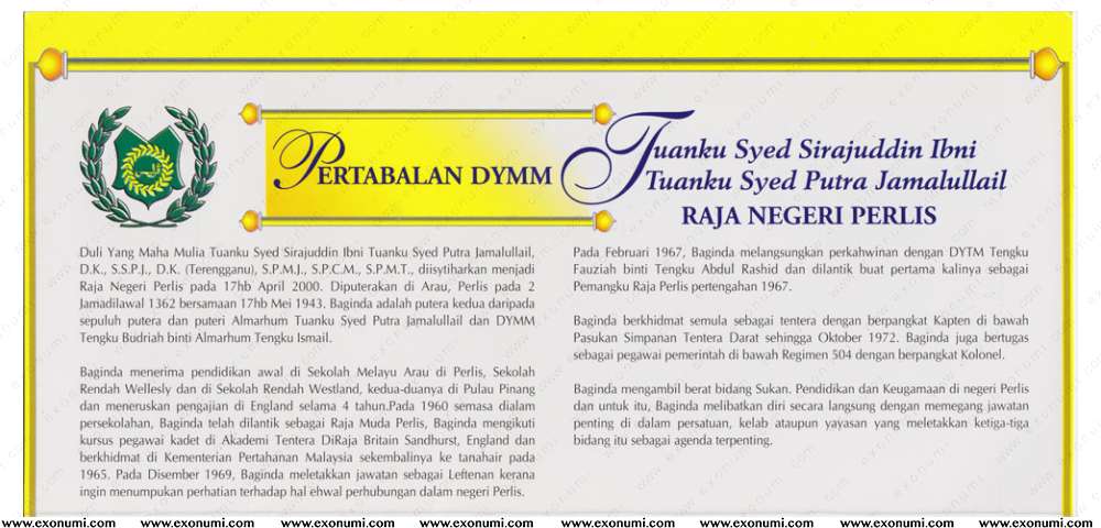 Malaysia - Installation of HRH Tuanku Syed Sirajuddin ibni Syed Putra Jamalullail (2001)