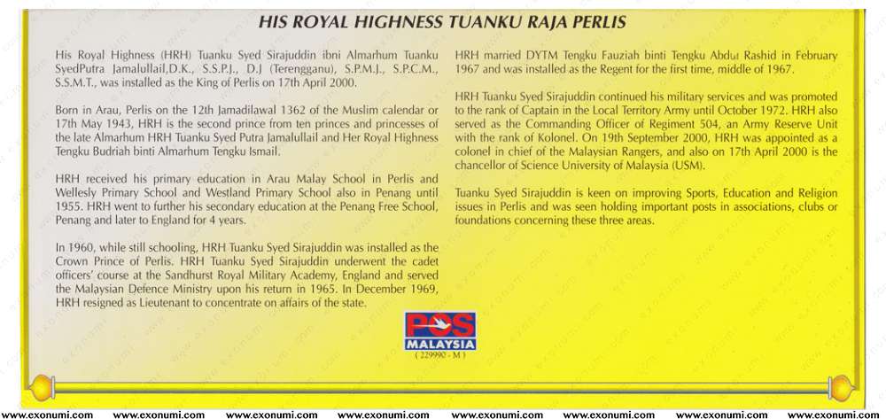 Malaysia - Installation of HRH Tuanku Syed Sirajuddin ibni Syed Putra Jamalullail (2001)