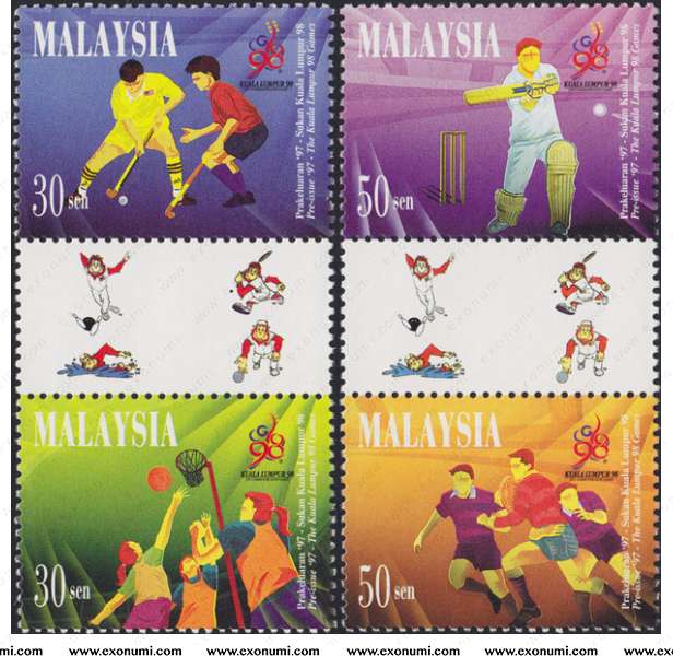 Malaysia : Fourth Pre-Issue XVI Commonwealth Games (1997) Gutter Pairs