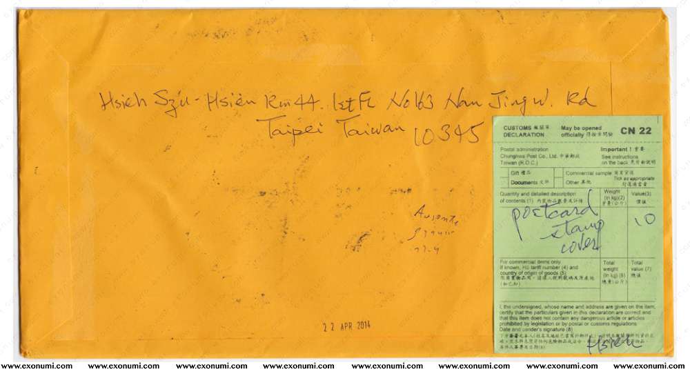 Spain - Postal Cover from Taiwan (2014)
