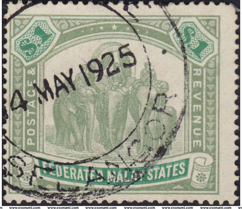 Federated Malay States : $1 (1904) Fiscally Used in 1925