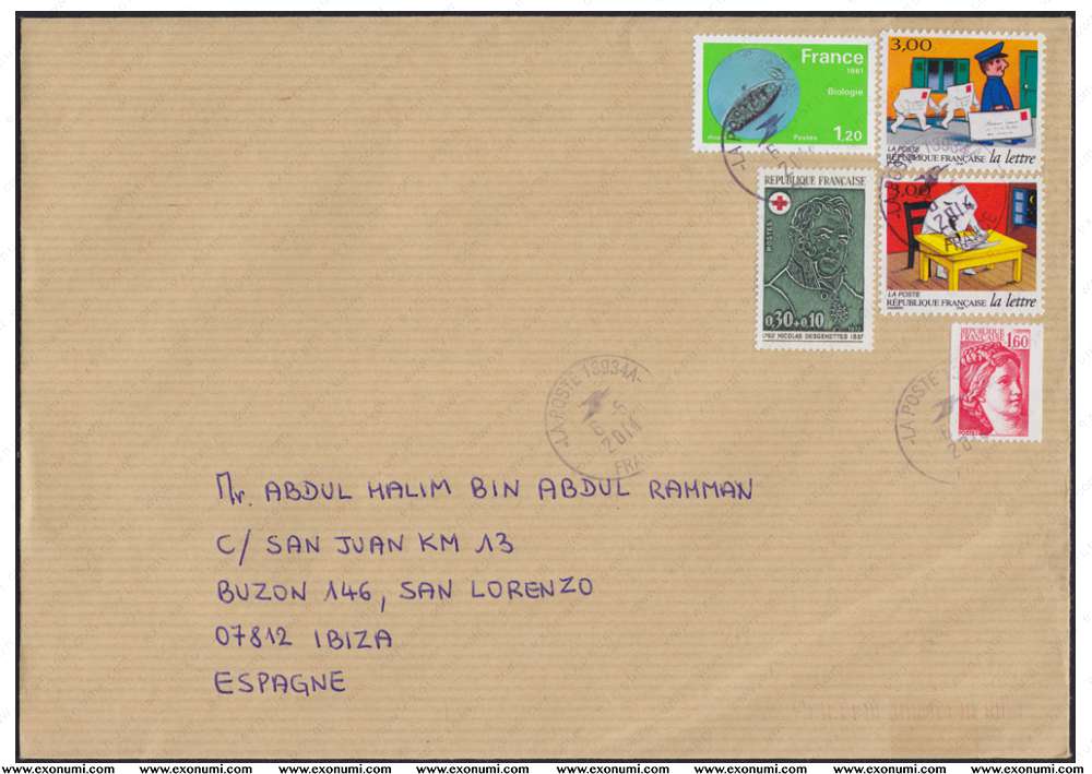 Spain - Postal Cover from France (2014) Multiple Stamps + Pre-EU