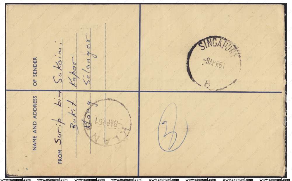 Federation of Malaya - Registered Letter (G Size) - Kapar to Singapore (1961)