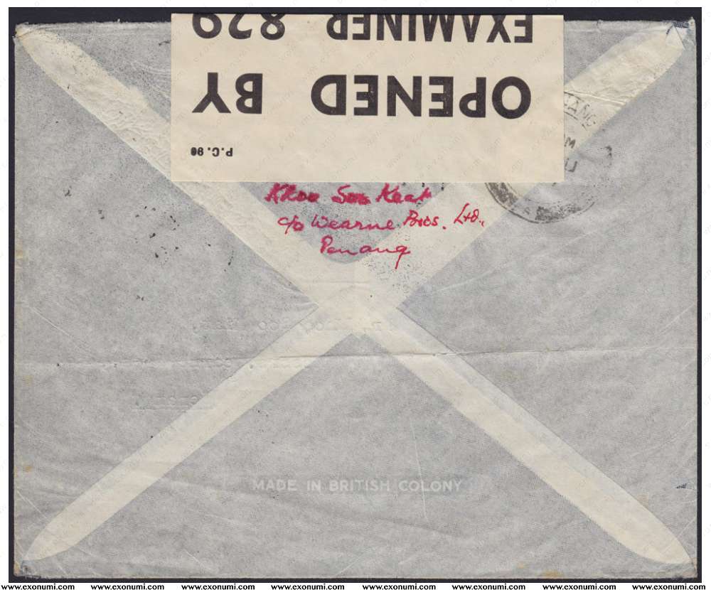 Inaugural Internal Air Services 1937 Wearne's Air Services - FFC from Singapore to Penang and Re-routed to Singapore