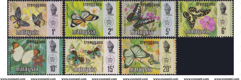 Malaysia - Terengganu Definitive Series : Butterflies (1971) MNH