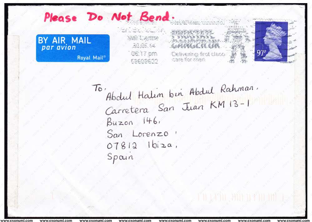Spain - Postal Cover from Great Britain (2014) New Definitive 97p