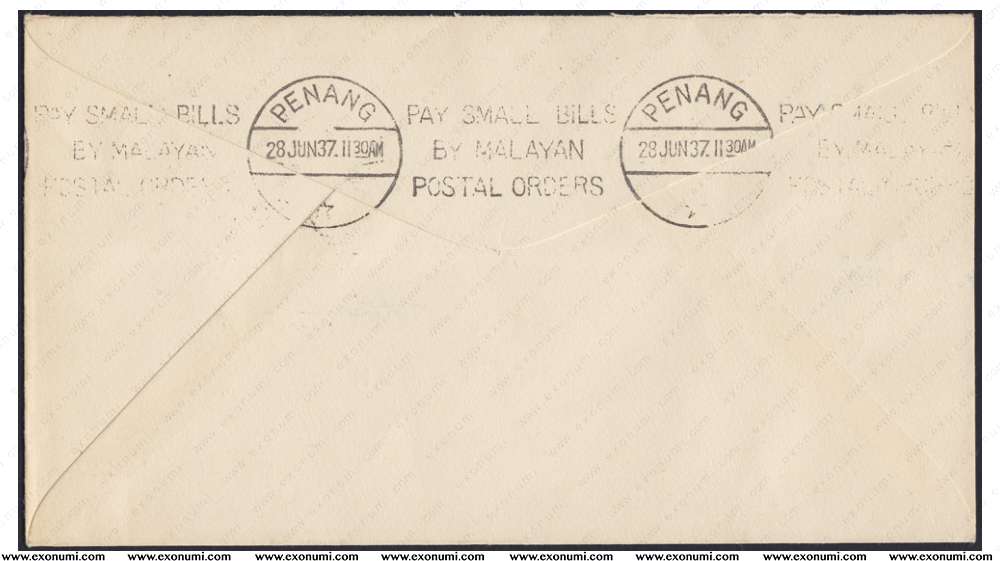 Malaya - Inaugural Air Services 1937 (First Flight Cover) Wearne's Air Services from Singapore to Penang