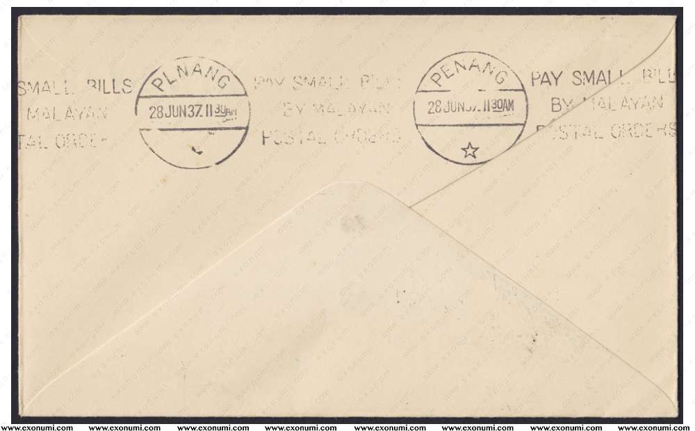 Malaya - Inaugural Air Services 1937 (FDC) Wearne's Air Services from Singapore to Penang