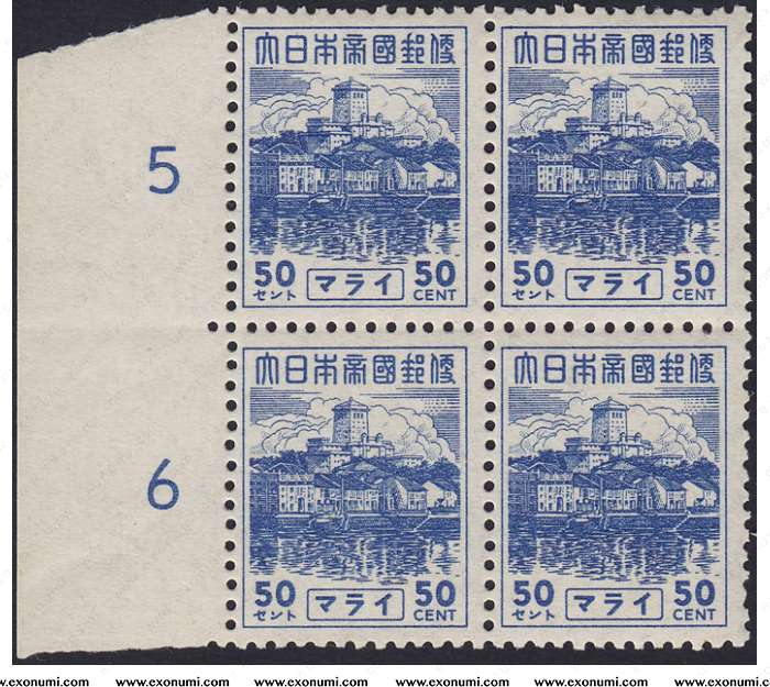 Malaya - Japanese Occupation : General Pictorial Issue 50¢ Block-of-4 with Margin (1943)