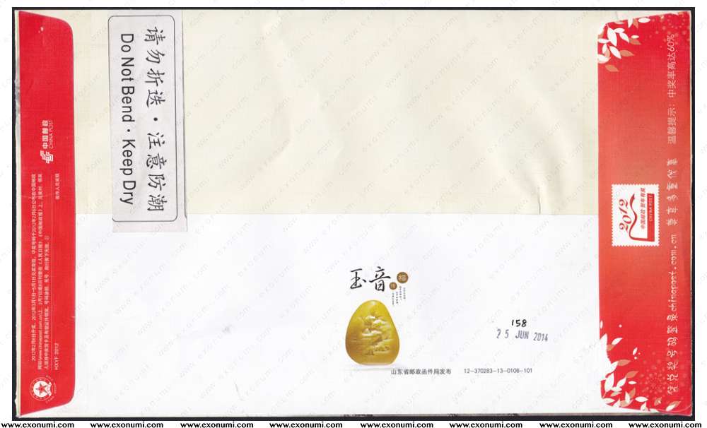 Spain - Registered Cover from China (2014) Stamps + Indicia