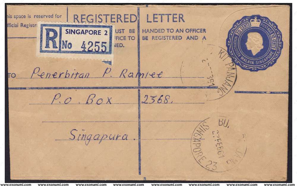 Malaya Singapore - Queen Elizabeth II : Registered Envelope (1961)