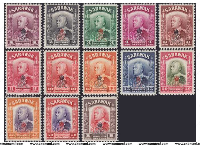 Sarawak - Overprinted with King George VI's Royal Cypher (1947) Short Set 1¢ to $1
