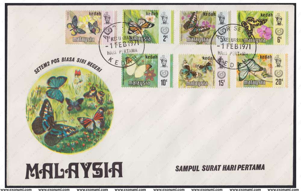 Malaysia : Kedah - State Definitive Series : Butterflies (1971) FDC