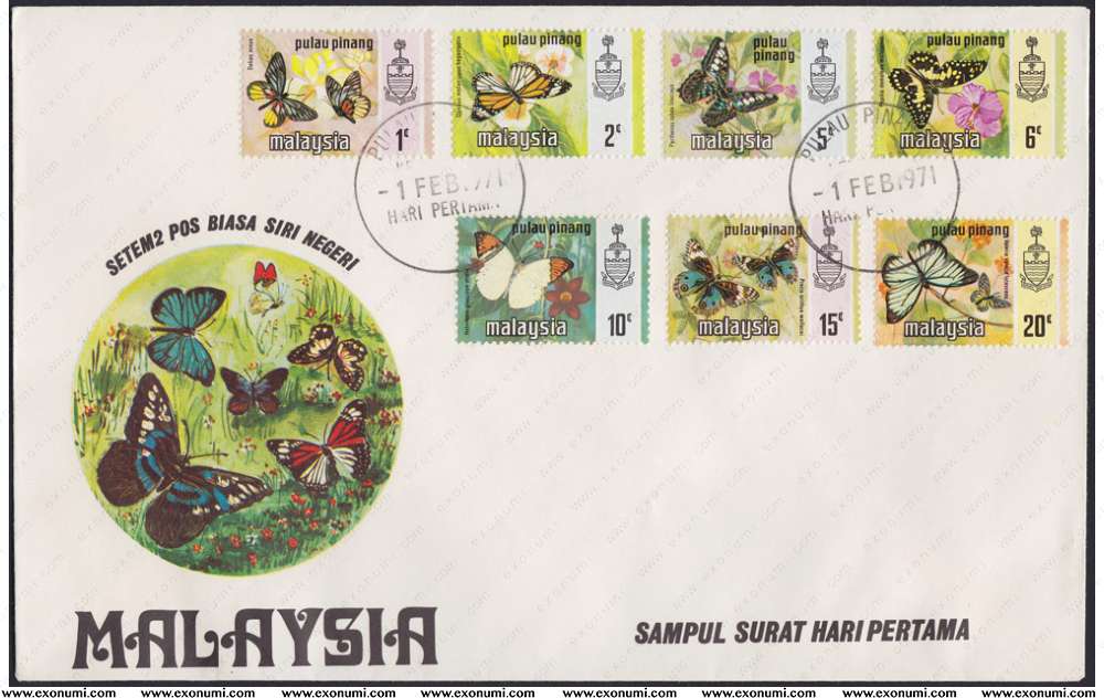 Malaysia : Pulau Pinang - State Definitive Series : Butterflies (1971) FDC