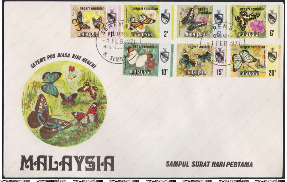 Malaysia : Negeri Sembilan - State Definitive Series : Butterflies (1971) FDC