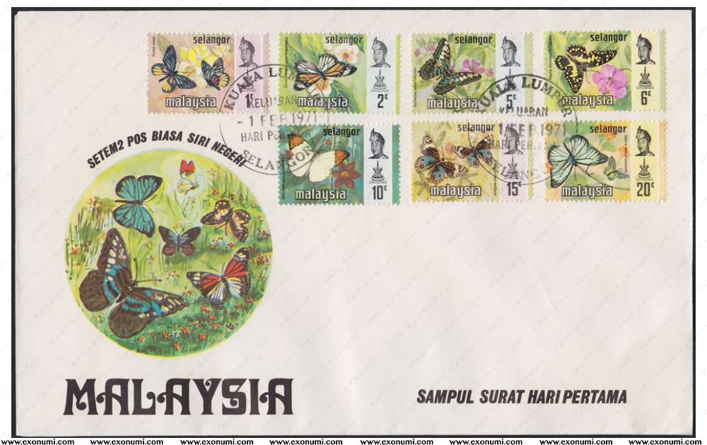 Malaysia : Selangor - State Definitive Series : Butterflies (1971) FDC