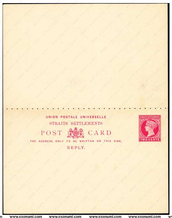 Straits Settlements - Queen Victoria : Postcard 2¢ + 2¢ Reply (1893)