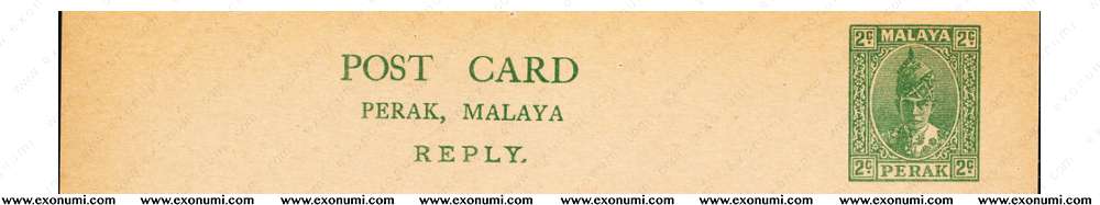Sultanate of Perak - Postcard 2¢ + 2¢ Reply (1938) SPECIMEN