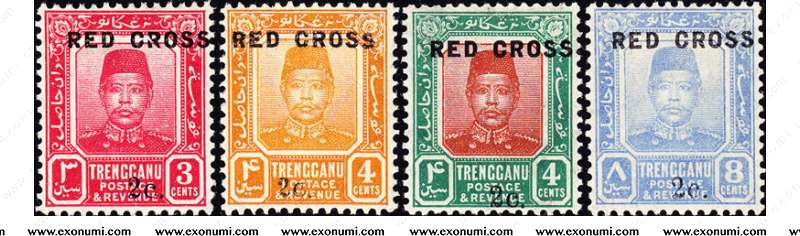 Sultanate of Terengganu - Overprinted & Surcharged : RED CROSS (1917)