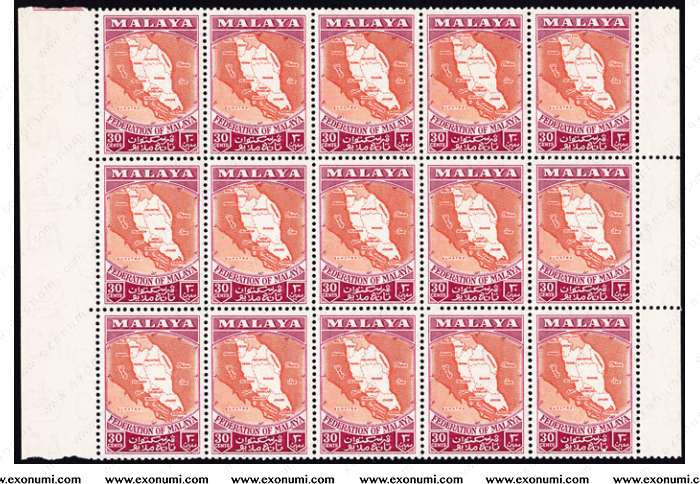 Federation of Malaya - National Pictorial Definitive Series 1957 : 30 cents - 15 pieces