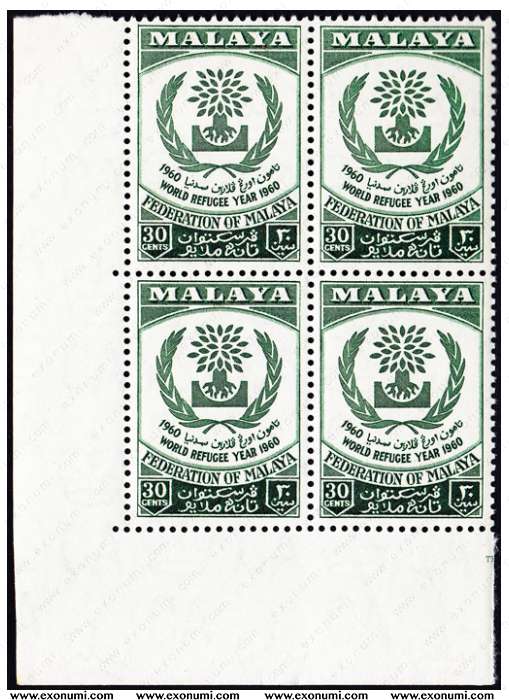 Persekutuan Tanah Melayu - World Refugee Year (1960) Block of 4 with Margins