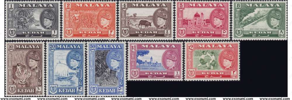 Malaya : Kedah - State Definitive Series (1957) Short Set from 1¢ to $2 MVLH
