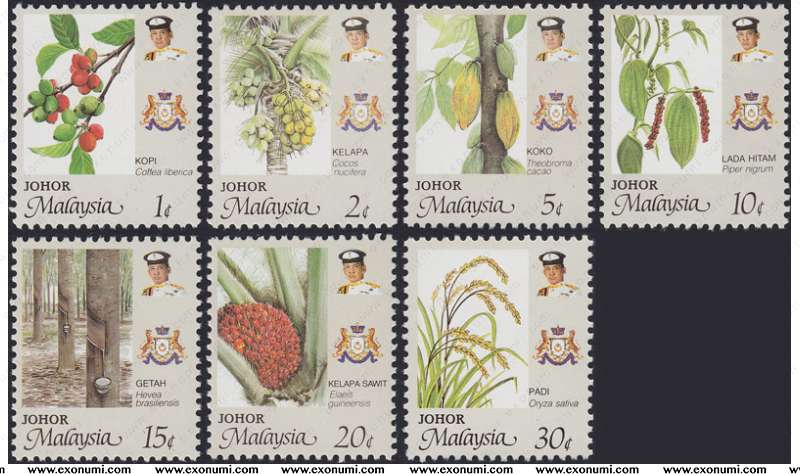 Malaysia : Johor - State Definitive Series : Agro-Based Products of Malaysia (1986) MNH