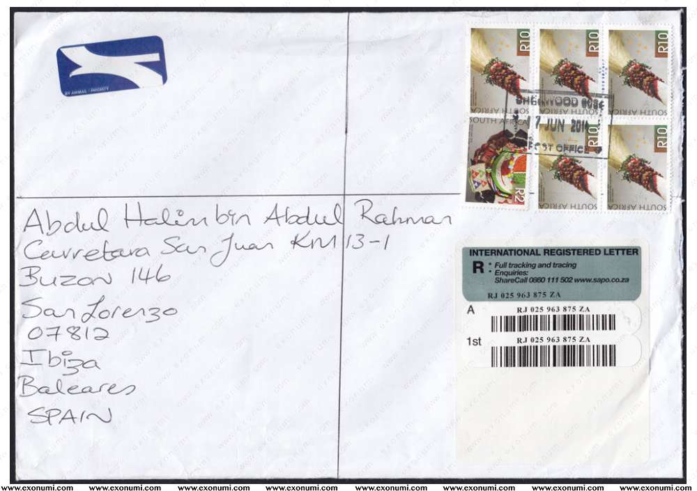 Spain - Registered Cover from South Africa (2014)