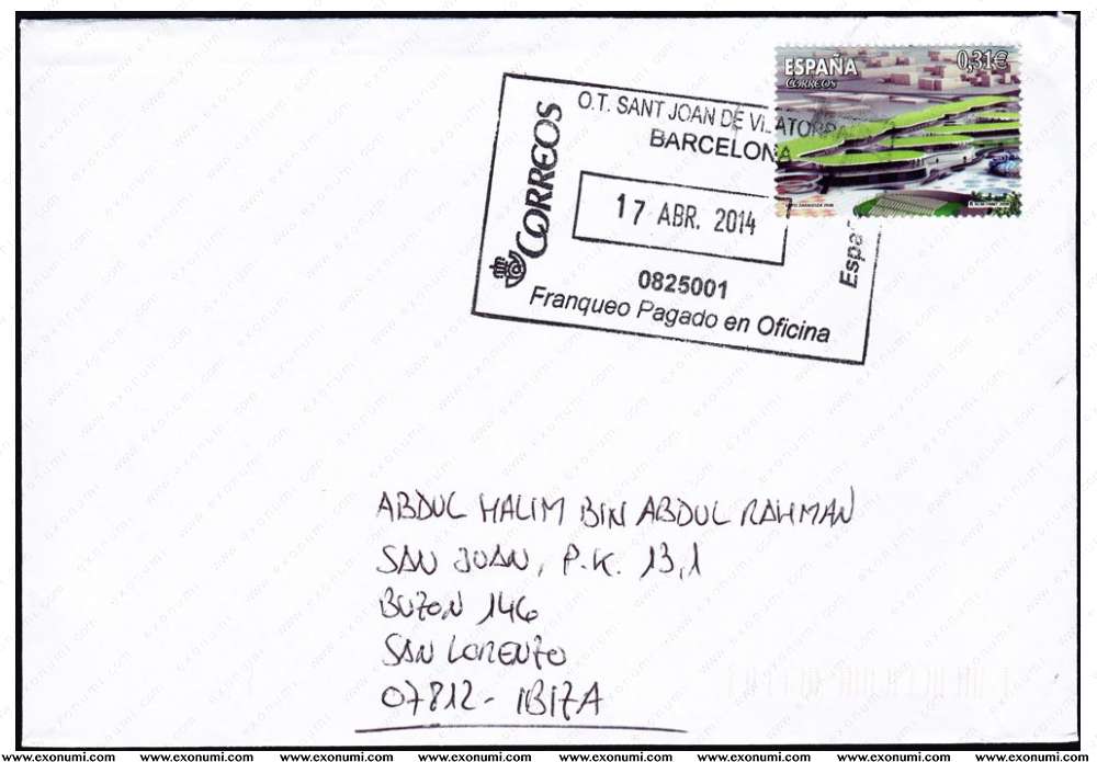 Ibiza - Postal Cover from Barcelona (2014)
