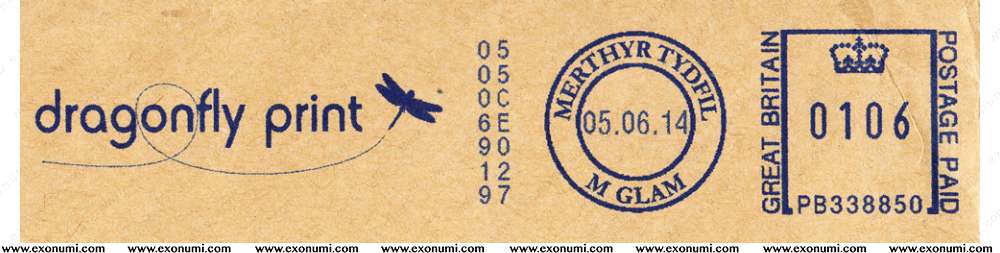 Great Britain - Meter Franking - Dragonfly Print (2014) Ink-jet in Blue