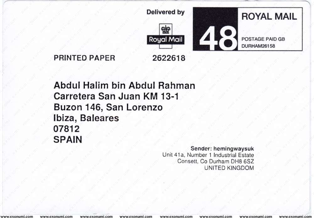 Spain - Meter Franking from Great Britain (2014) Laser Print