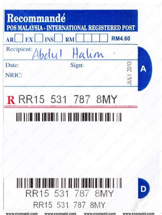 Spain - Registered Cover from Malaysia (2014)