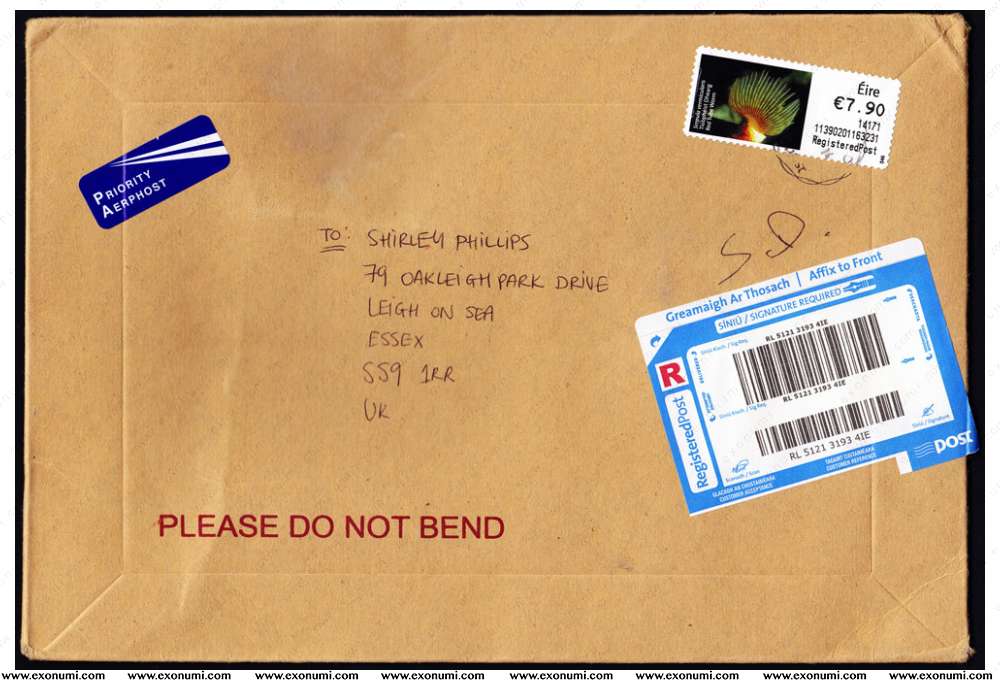 Great Britain - Registered Cover from Ireland (2014) with ATM stamp