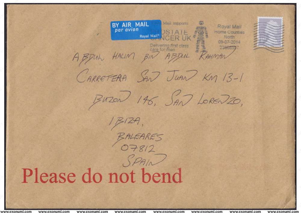 Spain - Postal Cover from Great Britain (2014) New Definitive £1.47