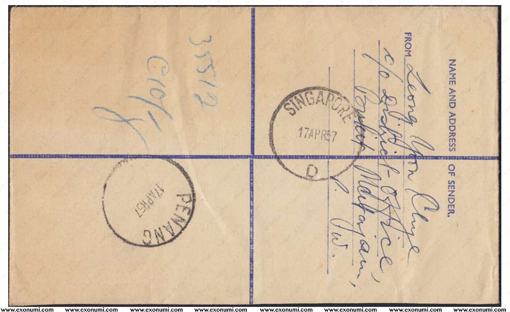 Penang - Registered Envelope : Queen Elizabeth II (1957)