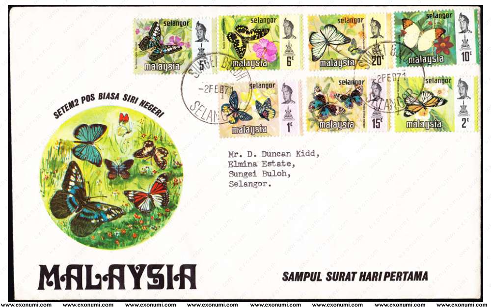 Malaysia : Selangor - State Definitive Series : Butterflies (1971) FDC