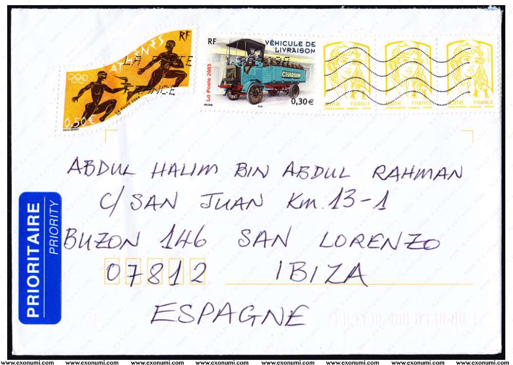 Spain - Postal Cover from France (2014) with Athens Olympic 2004 stamp