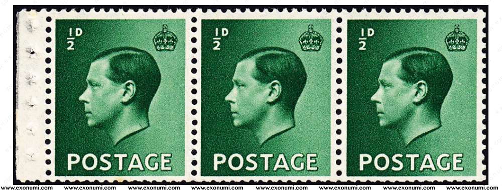 Great Britain - King Edward VIII : ½d Booklet Strip of 3 & Watermark Inverted (1936)