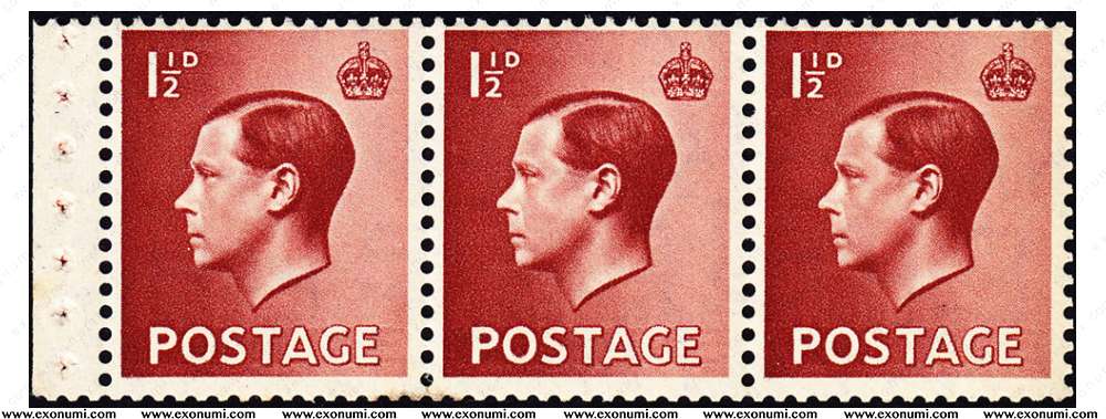Great Britain - King Edward VIII : 1½d Booklet Strip of 3 & Watermark Inverted (1936)