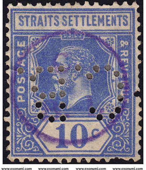 Straits Settlements : King George V - 10 cents (1921-1923) Perfin C.B.L