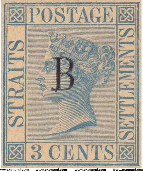Bangkok British Post Office - Overprinted 'B' on Straits Settlements 3¢ Postcard (1882-1885)