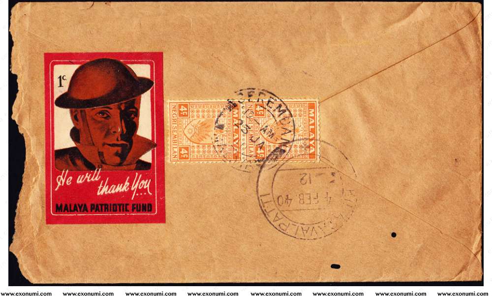 Postal Cover with 'Malaya Patriotic Fund' from Malaya to India (1940)