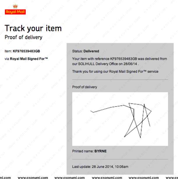 : Delivery confirmation.