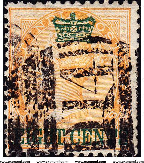 Crown Colony of Straits Settlements - 8¢ on India's 2 Annas (1867)