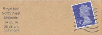 Spain - Postal Cover from Great Britain (2014) Missing Slogan